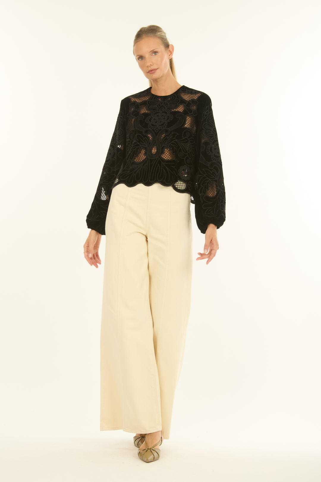 Linnea Top - 100% Organic Silk Crepe Georgette with Lace