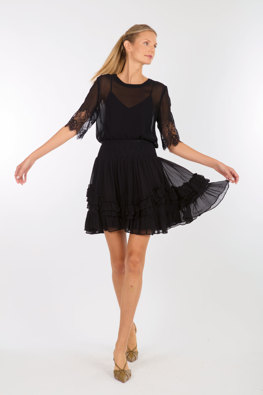 Nilou Skirt - 100% Organic Silk Chiffon with Lace