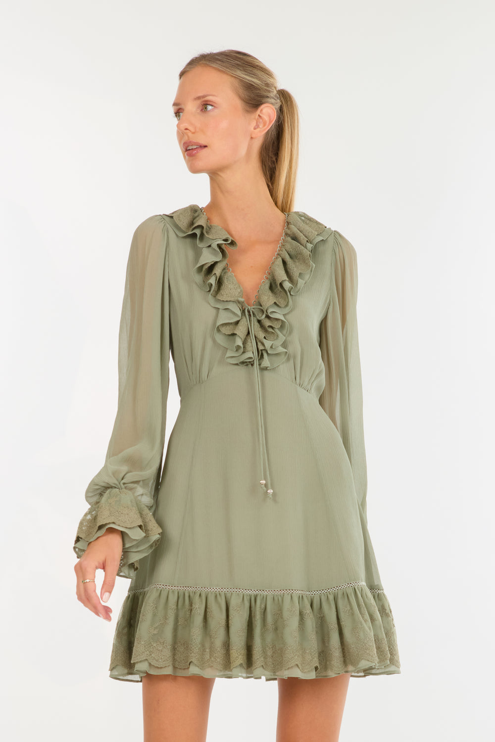 Paulette Dress - 100% Sand washed Silk with Lace