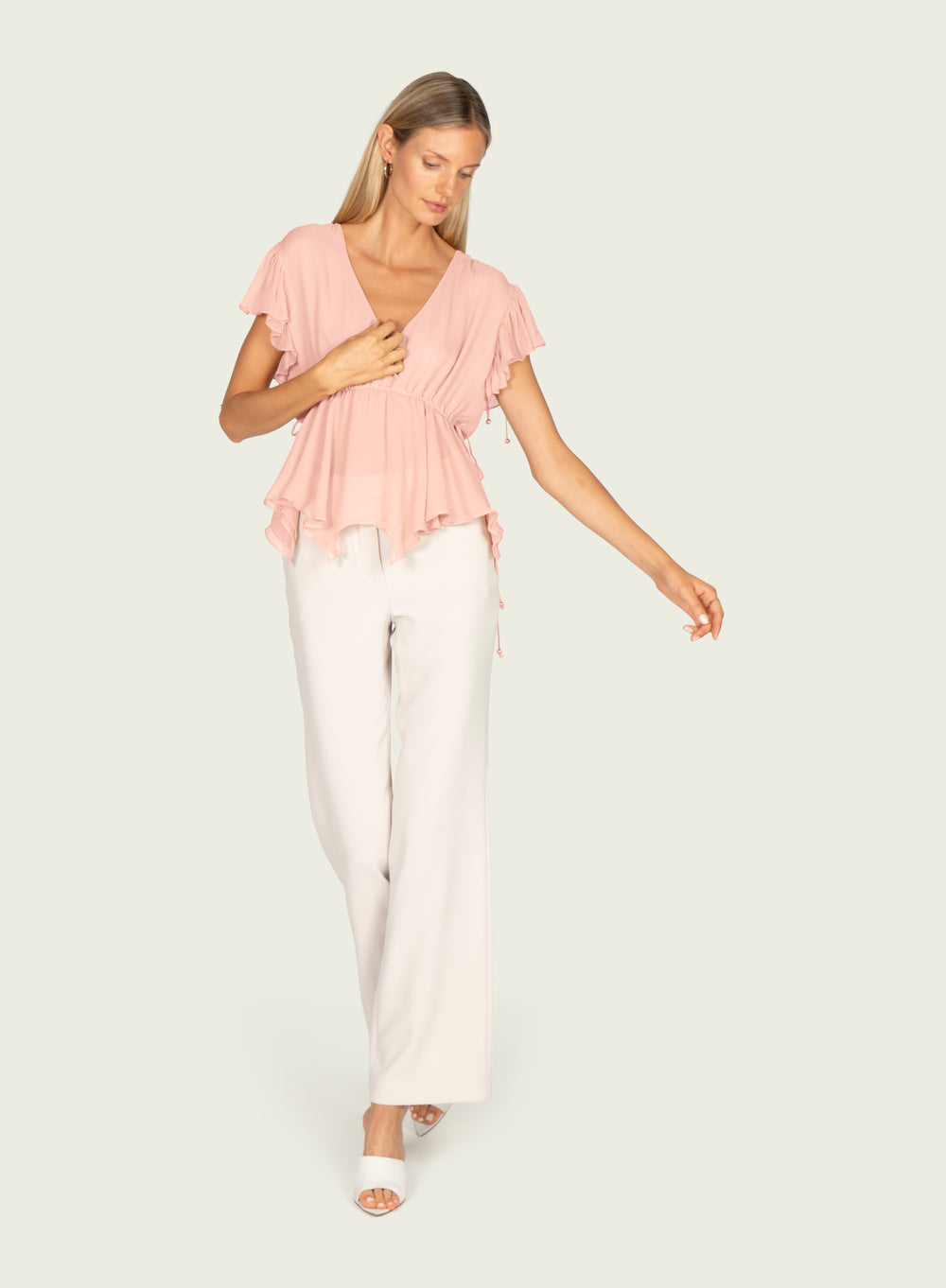 Bohemian spirit sweeps through the collection in a celebration of romantic and vintage inspired silhouettes. The sheer flowy chiffon pieces are in a soft sun-faded palette. Several styles have delicate lace detailing bringing a nostalgic feminine feel to each piece. The collection is reminiscent of the ethereal elegance of the neoclassical era, infused with a contemporary twist that captures a modern style.